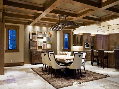 cabins use materials that evoke nature and the wilderness. Rustic  made from logs and native wood is popular in cabins. Large pillowed sofas, amongst natural wood, and fibers are still rustic and shows off your interpretation of natural and organic. In large homes, a family style dining room table coupled with wood benches, and large timber chairs are little upkeep and show-off perfectly.